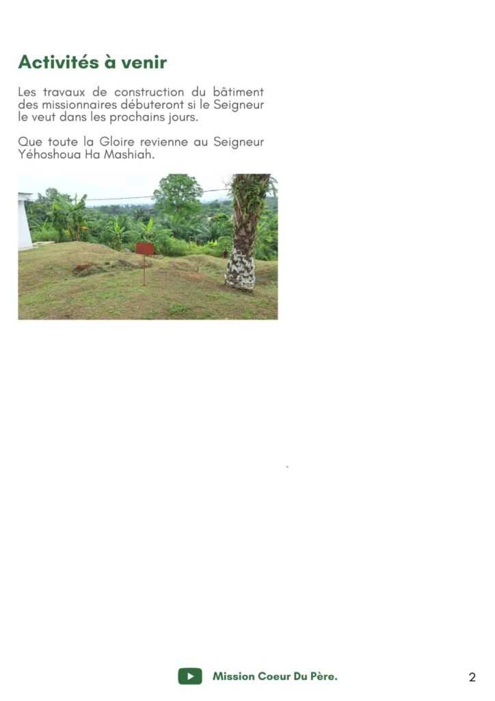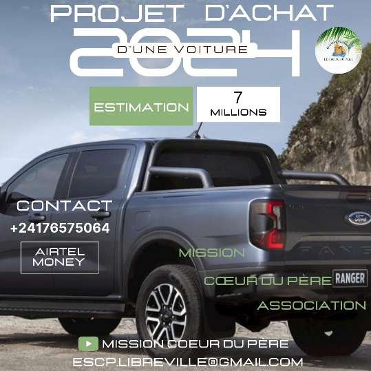 Dans le cadre de l'avancement de l’œuvre que le Seigneur nous a confié, nous avons en projet l'achat d'un pick-up pour faciliter nos déplacements pour pouvoir atteindre les provinces du Gabon à partir de Libreville et aussi si le Seigneur permet, nous allons élargir notre champ d'action dans les pays voisins.